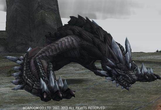 在传说中无法生存的边境之地被目击到的古龙。从各地仅存的资料推测那是被称作“炽冻龙”的古龙。关于此古龙可说是完全没有残存的相关资料,详细的生态至今不明。