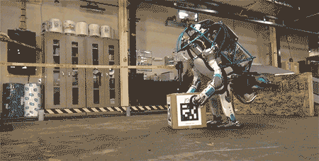 倒地了都能自己起新版的Atlas已经可以迅速识别货物,并将它准备地放在货柜上。以后让它帮忙提个箱子,拎个包什么的都不是问题。。