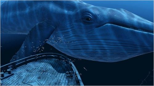 《TheBluVR》就是扮演在深海沉船上的潜水员,遭遇各种海底生物的演示。最后巨大的鲸鱼游过来,覆盖了体验者的视野,让人能充分感觉到巨大身躯带来的魄力。没有什么游戏要素,主要就是看。