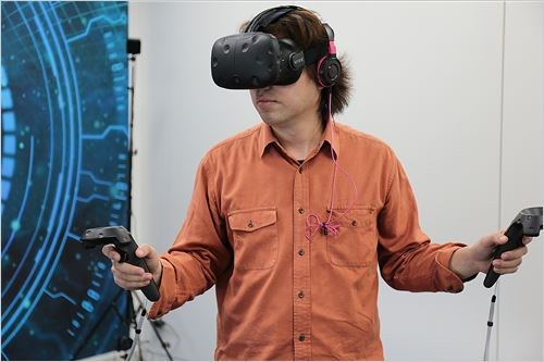 不仅仅是进入虚拟世界,还可以走来走去,这就是Vive的特征。其实现的品质非常高,移动和头部的捕捉都没有延迟,就好像是自己在走动观察一样。