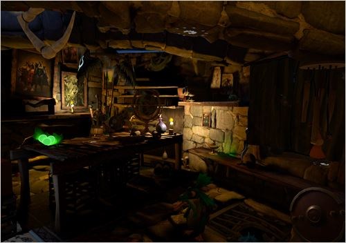 最后体验的是Valve使用DOTA2世界观制作的探索冒险演示《Secret Shop》。玩家要扮演在古旧魔法道具店的旅人。玩家需要寻找店内存在的魔法阵,找到魔法阵发动魔法,然后玩家的身体机会变小,能够和奇妙的生物进行交流。