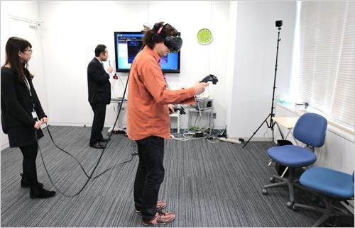 最大限度活用了自己移动这个优势,小而美的演示内容很多,行动受到房间大小的制约也是没有办法的事情。如果这里使用按键进行移动,就和其他公司的VR一样了。使用按键操作的话,牺牲了快适性,但移动空间就变成是无限的了。