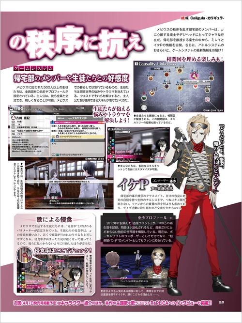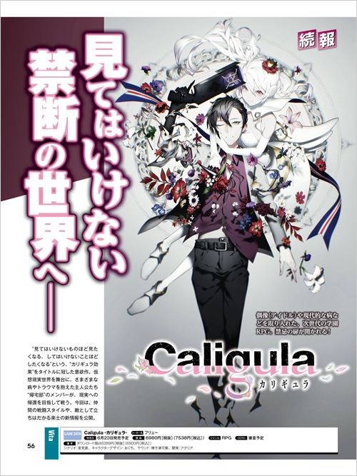 Furyu推出的PSV平台完全新作RPG《卡里古拉(Caligula -カリギュラ-)》本周杂志公开新情报,这次介绍了伙伴的战斗型,以及作为敌人的乐师们相关内容。游戏预定于2016年6月23日发售。