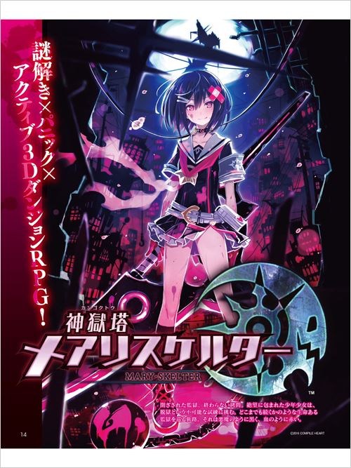 电击文库×电击PlayStation×COMPILE HEART推出的PSV平台3D迷宫RPG《神狱塔 MARY-SKELTER》本周杂志公开新情报,这次主要介绍了游戏版(本作还在电击PS连载前日谭的小说版)的角色、系统相关内容。游戏预定于2016年内发售。
