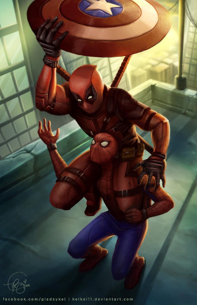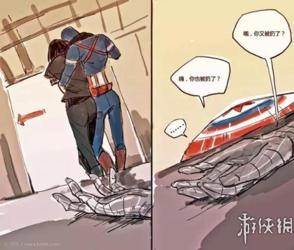 来自@HXXOOXX的设计,钢铁侠夸奖抢走美国队长盾牌的蜘蛛侠说,good boy!干得不错!