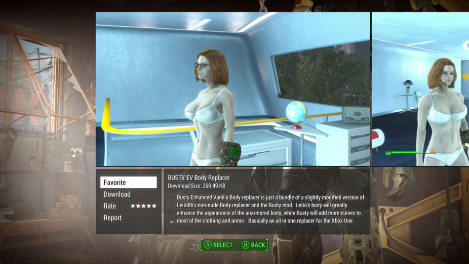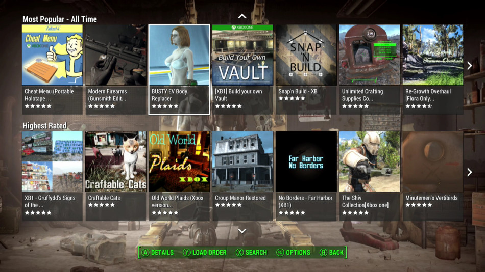 Xbox One的玩家们现在可以使用《辐射4》的MOD了!共计有885个MOD供Bethesda一一上架。目前Xbox One上面的《辐射4》MOD最受欢迎的是一个叫“作弊菜单(cheat menu)”的mod,能让你增加瓶盖或者兴奋剂之类的。其次是“丰乳肥臀替换者(Busty Enhanced Vanilla Body replacer)”,当然也有一些猫和枪的MOD也颇受欢迎。