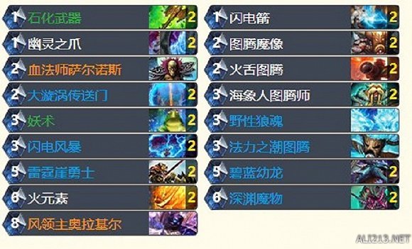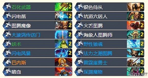 对阵铺场职业不再仅仅只是依靠闪电风暴来返场,萨满拥有了新的AOE手段,尤其是在配合法强能够打出清场并且占场的完美效果。这让之前就很强势的中速萨得到了进一步的强化,衍生出了基本构筑大同小异,随核心思路变化的图腾萨、进化萨和嗜血萨,在天梯中胜率均超过60%。