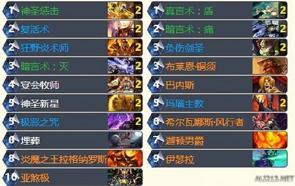 虽然能够打出铜须、巴内斯拉出螺丝和亚煞极,复活、铜须接玛瑙主教的高质量铺场的精彩Combo,复活牧在对阵偏后期卡组也显得尤为强大。但前期太弱以及过牌的问题极大的限制了这套卡组的发展。在现在追求胜利的环境中,短暂盛极一时的复活牧在天体中又变得寥寥无几了。