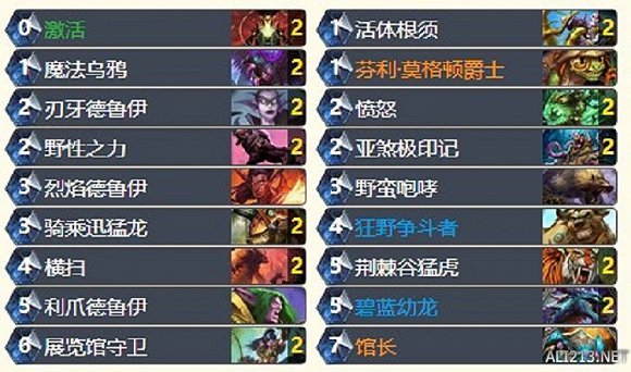 依在馆长的带领下,随着新野兽卡魔法乌鸦的加入,德鲁伊在1费的时候就拥有了非常优质的野兽生物,解决了前期随从较弱的问题。一度销声匿迹的野兽德,再一次的强势回归了。