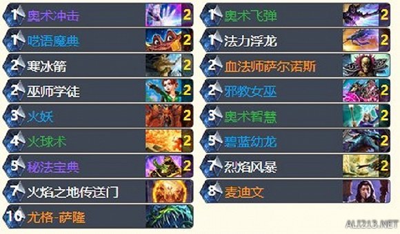 卡拉赞最后一张橙卡麦迪文的出现,赋予了法师新的力量。麦迪文节奏法以传统火妖法位基础,克服了后期没有高质量的随从占场的问题,将胜率提高到了接近60%。