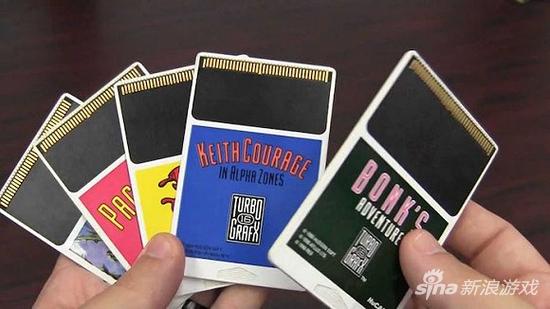 不易于存储的卡带,但却拥有极佳的拔出方式。Turbografx 16卡带完全是一张卡片。卡带大部分绘制了图案,而连接部分是一整块黑色,在某种意义上这种设计值得敬佩。再没有其他卡带如同这般,可以向人大声炫耀:“快看这个!”