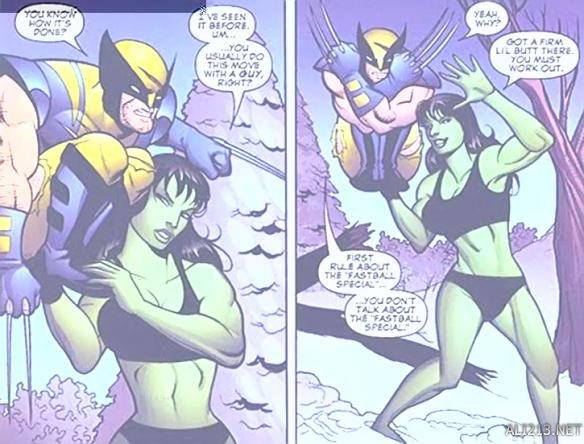 女绿巨人的私生活不仅是男性编剧的兴奋点,也成了漫威宇宙中男性英雄的兴奋点。“你没跟女绿巨人睡过你都不好意思在漫威混”,这句话已经成了漫威宇宙中男英雄之间流传的段子。