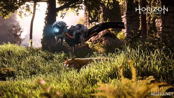 索尼互动娱乐与游戏开发商Guerrilla Games近日公布了《地平线:黎明时分(Horizon: Zero Dawn)》新一批游戏截图。在这片被机械巨兽盘踞的异状世界,女主孤身一人,单枪匹马地对阵各种各样的机械生物。