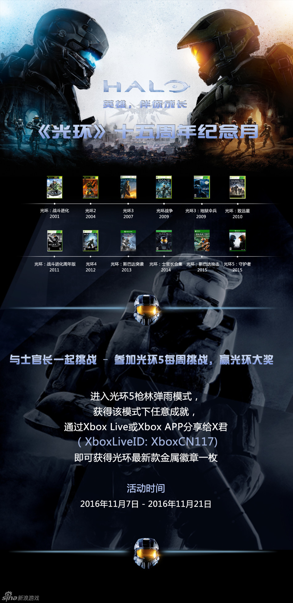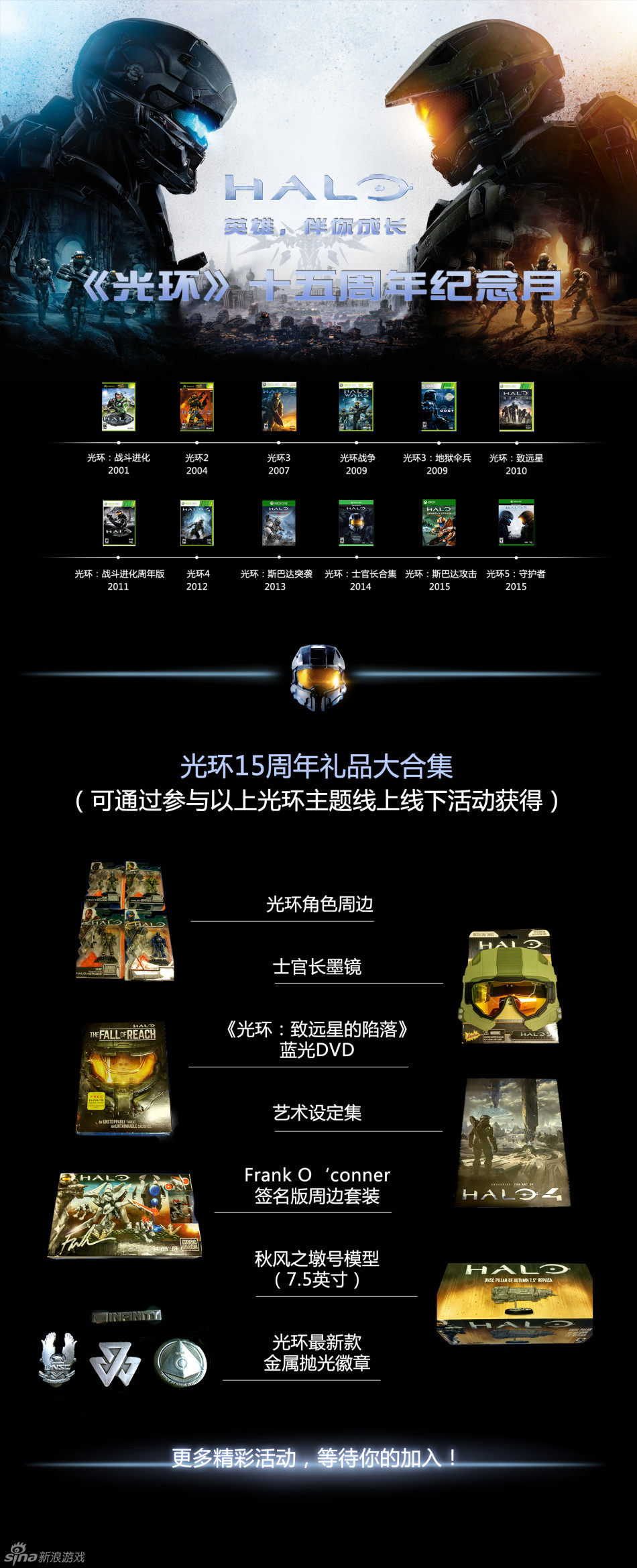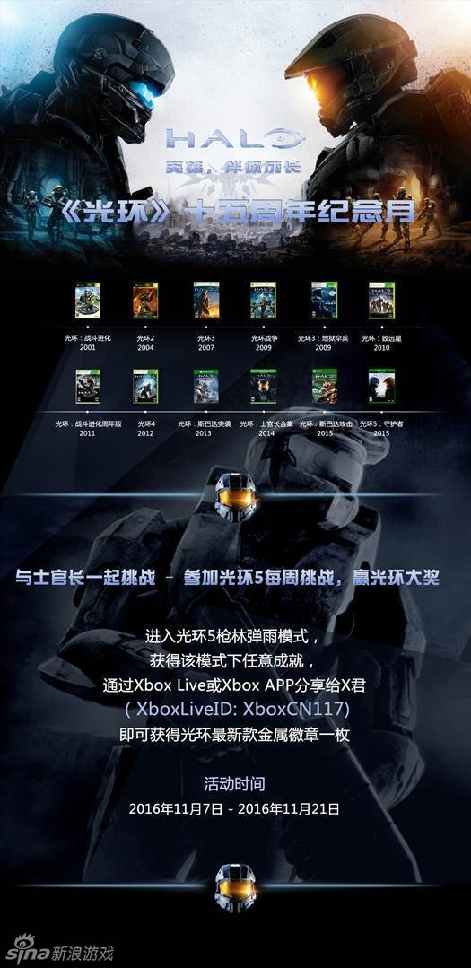 8/8 光环15周年线下聚会将开启除了线下聚会,在线上也有丰富的纪念活动和福利等待各位斯巴达战士的参与,关注Xbox官方微博,了解更多详情。