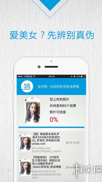 在宣传语上这款“支付鸨”APP更是直接用上了“拒绝套路,一查究竟”,软件描述中这样写道“联合百度识图、360识图、搜狗搜图三大搜索引擎提供云端智能分析,准确率高达99.99%”,不仅能搜图,辨认美女,还能……”下面小编就带大家来看看,这款app究竟有什么作用!