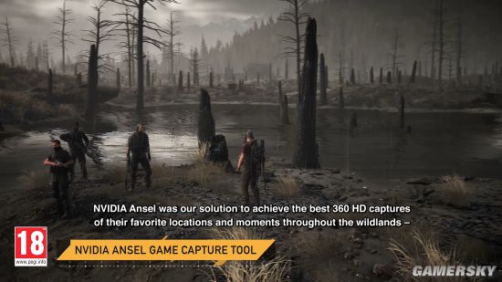 PC版N卡特效包括Nvidia版HBAO+细节阴影,Nvidia体积光,Nvidia研发的“草皮特效植被模拟系统”,有点像《最终幻想15》的“动态植被系统”,每个草叶均为独立多边形可以交互,随着角色路线,可以让草叶形成显示板的踪迹效果。另外还包括PC版截图工具Ansel,可以全景控制摄像机以及其他滤镜捕捉高清画面。