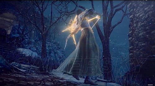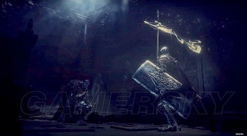形状不是很好脑补,不过应该挺帅的,同时这应该是一把BOSS魂武器。至于是直剑还是其他类别的武器则无从考察。(之前有人和我说过环之城dlc会有一把可变型的武器,该不会就是这把吧。好激动)