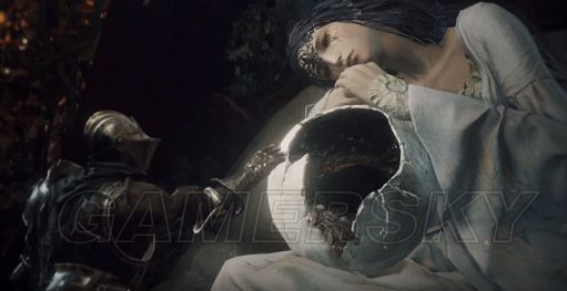 这是演示视频里已被黑暗侵蚀的女子,对她真实的身份也有种种说法如太阳公主,龙之母等。不论如何请看她的头部,有一个和防火女眼罩相似度很高的头饰,也许随着剧情的推进(杀掉此女之类的),防火女的眼罩会以彩蛋的形式掉落、老太太处购买、用魂换等方式让玩家得到,让玩家圆了COSPLAY防火女的梦(我仿佛闻到了一丝宮崎英高的怜悯)