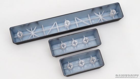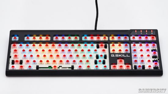 金属质感的G.SKILL logo,强烈建议这枚logo也做成RGB透光设计,光效将会更酷,海盗船、赛睿的顶级RGB机械键盘都是此类设计。