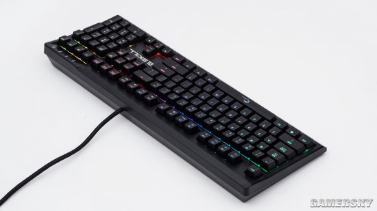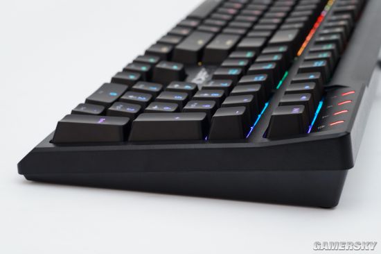 KM570 RGB共有108颗按键,由标准美式104配列加额外4颗多媒体按键构成,即大退格、小回车的布局,符合大多数国人的输入习惯。尺寸446.5mm x 158.8mm x 45.5mm趋向紧凑,重量1.25KG和一般机械键盘差不多。