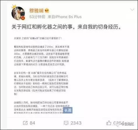 被网友怒怼一波以后,为了给大家一个交代,穆雅斓写长文辩白,文中称网店已经易主,并甩锅称店铺卖商品与自己无关。