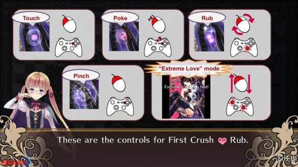 玩家和立绘之间的互动形式可以用下图进行表示,相信即便是看不懂英文的玩家也能轻松上手。而本作中和美少女互动才能让其变强的形式,细细想来和笔者之前评测的《罪恶少女:诱惑》有着不可忽视的相似之处。两者之间的差别,大概也只是本作中的互动位置需要玩家仔细寻找了。