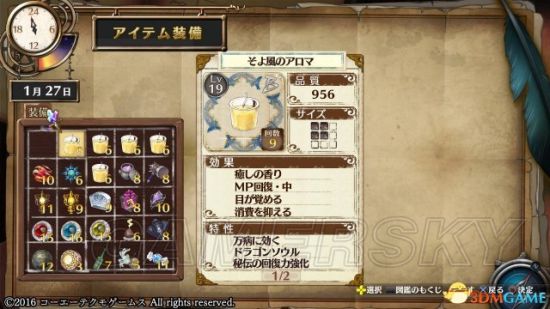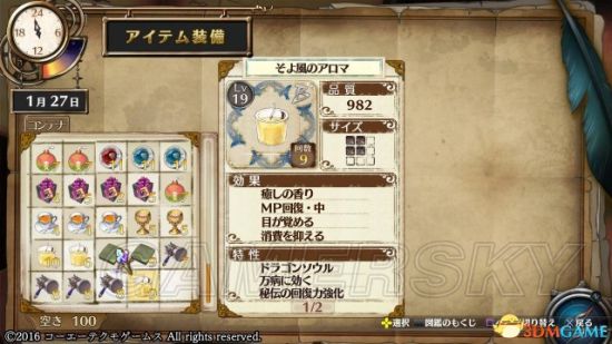 2.右上角是道具的调和时间,但这东西一点都不重要,除非刚玩的时候第一年可能会在意一下这东西,除此之外因为本作考完试后时间无限所以完全没差。