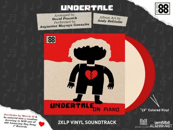 《传说之下钢琴版》是张2xlp,同时也是iam8bit的“Series 88 ”的第一张黑胶唱片,其中包含有游戏作者Toby Fox制作的曲子,包括有Dummy!, Bonetrousle, Death by Glamour, and Megalovania.