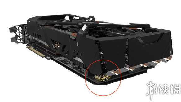 技嘉显卡的一大独特设计就是XTREME GAMING系列提供用于连接机箱前置HDMI的VR便捷端口,原来有两个,这次AORUS上面只留了一个。一个就足够了,两个确实没有必要。