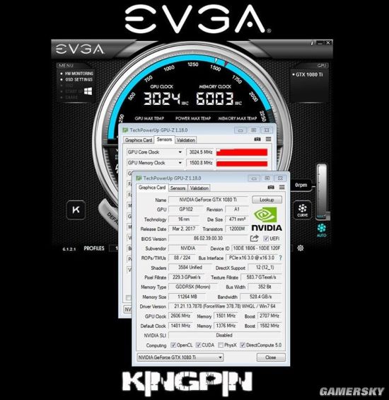 就在近日,经过EVGA在FB的确认,旗下的一块GTX 1080 Ti在液氮的帮助下甚至将主频核心超到了3024MHz,完全是默认频率1480MHz的一倍以上!