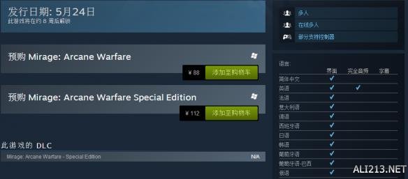 《幻影:奥法战争(Mirage: Arcane Warfare)》是一款主打多人近战的第一人称动作游戏,昨晚开发商Torn Banner(曾经开发的《骑士:中世纪战争》在Steam平台已经免费)正式公布了游戏的发售日:游戏将在5月23号正式在PC平台(Steam)发售。同时游戏在Steam的商店页面也进行了更新:支持简体中文,并开启了预购。