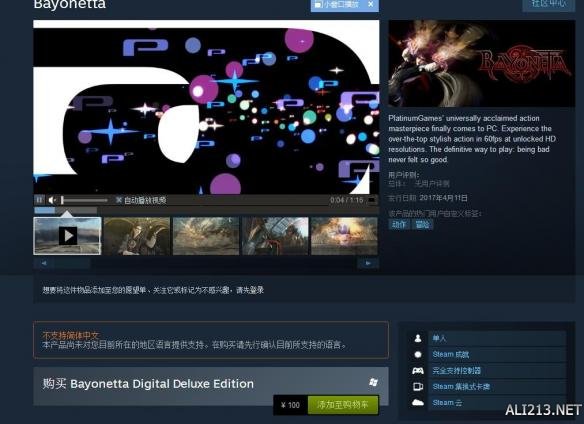 目前《猎天使魔女》已经正式登陆STEAM商店