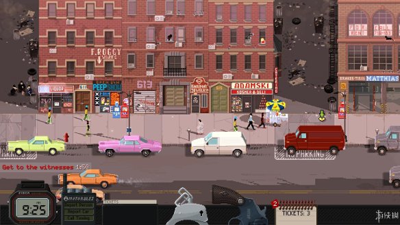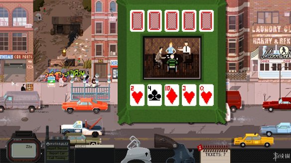 不像其他警匪游戏那样玩家上来就扮演特种队员捉拿恐怖份子,《beat cop》这款游戏十分贴近于现实生活中一个小警察的角色。玩家日常的工作就是给路边违章停车的车辆贴罚单并联系拖车公司拖走车辆。同时还会有街坊邻居来拜托你解决各类日常问题,像是为什么老王家的咖啡店不开门了啊,这可是我们布鲁克林街唯一一家咖啡店,没有了咖啡喝我还怎么开始美好的一天;又或者小女孩的猫丢了要求你去帮她找猫;更甚至街上的小混混手枪丢了都要你帮忙寻找。笔者感觉游戏更加偏向于处理邻里和睦关系。(笑)