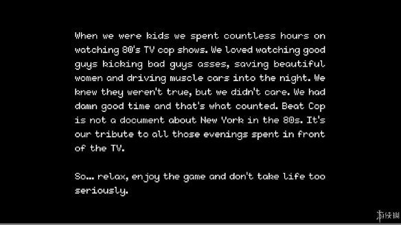 以上是笔者翻译的一段开发商在游戏开始时展现给玩家的话。可以看出这是一群热爱警匪题材的制作者为了纪念自己童年而制作的一款游戏,相信会有人有相同的感受并且喜欢这款游戏!