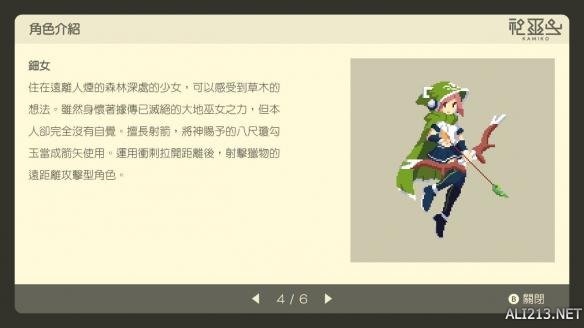 居住于人烟罕至森林深处的少女,能感受到树木及花草等植物的情感。虽然身上寄宿着据说遭到消灭的大地巫女之力,但本人却对此毫无自觉。擅长弓箭,将神赐予的八尺琼勾玉当作箭头使用。是一边冲刺保持距离一边射击猎物的远距离攻击型角色。