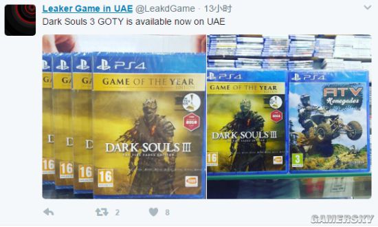 推特用户Leaker Game in UAE公布了两张新图显示,现在阿拉伯联合酋长国,《黑暗之魂3》年度版已经上架,可以购买。