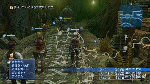 《FF12》的小地图显示之外,本作可以通过【L3】按键,打开全地图并通过画面在背景上表示出来,是非常便利的机能。并且实时显示现在的位置,目的地也可以进行确认。