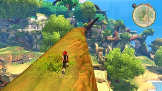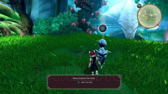 step2.走上附近的斜坡,Terra会教Chado辨识宝箱,搜刮之后获得蓝苹果。