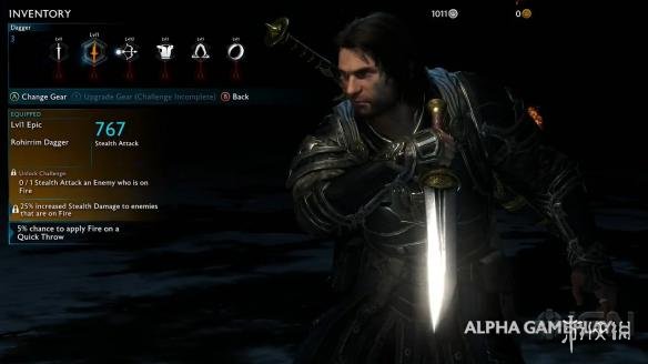 杀死小Boss后得到一个新匕首,潜行攻击值爆表767,还有附加属性——攻击着火的敌人,潜行攻击增加25%,解锁条件是:使用潜行攻击杀死一个着火的敌人。