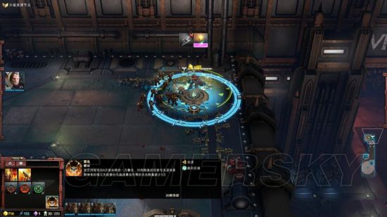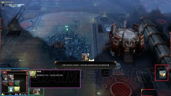 左下蓝框为单位、建筑功能区,查看建筑和单位的能力、修建和升级项目。