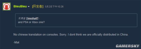 在被问道,《逃生2》的Xbox One和PS4版是否也会加入简体中文时,Red Barrels回应道,“主机版不会加入中文。”