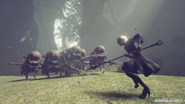 游戏讲述在被摧毁的地球上由人类的敌人外星人派来的机械生命体与人类方派出的人造人“尤尔哈(YoRHa)”部队进行战斗的故事。主角叫做“尤尔哈2号B型”人造人,擅长使用刀和长剑,在战斗过程中可以随时切换。而游戏中还有被称为“POD”的机器人进行远距离支援攻击。游戏里面充斥着各种暴力元素,这非常符合日系游戏的特点。女主角孤身一人,蒙着眼睛,与各种各样的机器人搏斗。