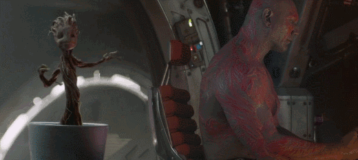 跳到一半,毁灭者啪唧摔到他身边,格鲁特立刻定住,恰好呼应前作最后的彩蛋。
