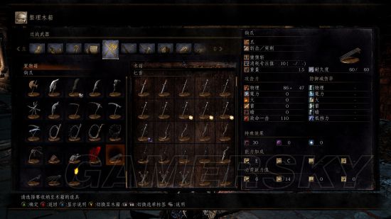 武器,黑魂怎么能不每把武器搞一把耍耍!然而在下是PVP菜鸡子,看我誓约道具就知道了,这里什么特殊、成对的武器 什么的都归到大类里面,比如歌德对剑放到直剑里面,可能位置不太够。