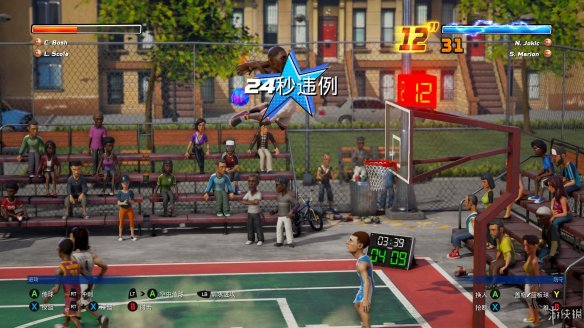 由于游戏中没有犯规的机制(只有24秒限制),肘击抢断只会减少能量条,并不会有所惩罚,因此防守全靠肘击,来互相伤害啊!