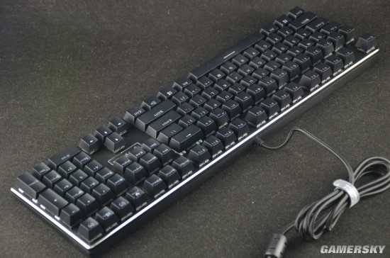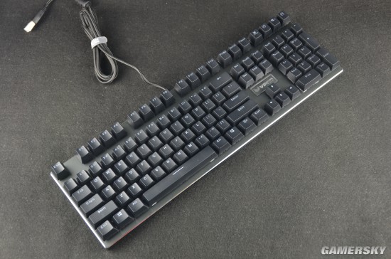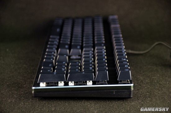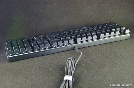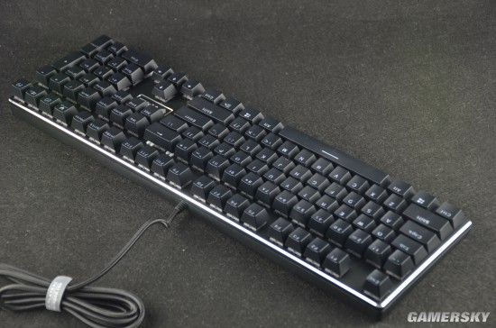 原厂的Cherry MX 6.0 黑轴,触发行程为2±0.6mm,出发压力为60±20g,无段落行程与段落压力,敲击起来非常顺畅,在游戏中表现出色。