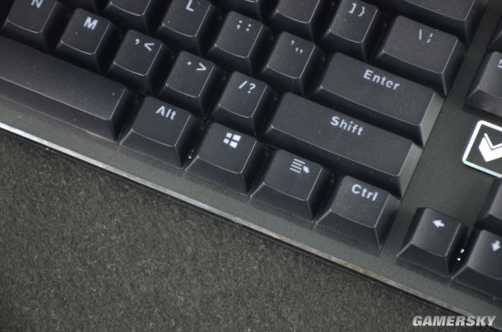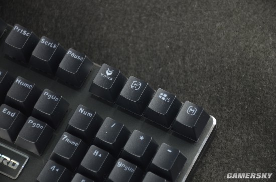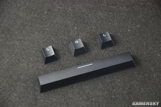 键帽特写。键帽材质为ABS,双色注塑工艺,表面采用磨砂处理。