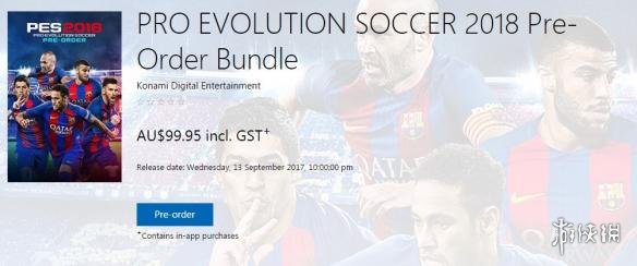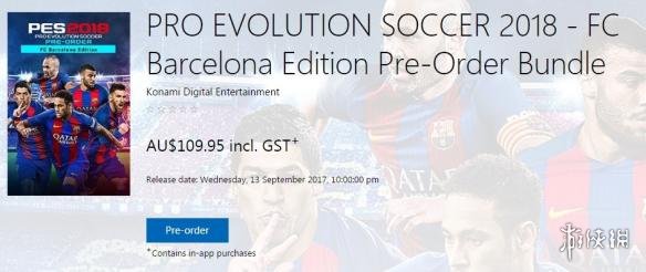 目前《实况足球2018》在Xbox澳大利亚商店有两个版本,分别是售价99.90澳元(约合人民币510元)的预购版和售价澳元(约合人民币561元)的巴塞罗那捆绑版,购买捆绑版则能获得独有的巴塞罗那俱乐部内容。