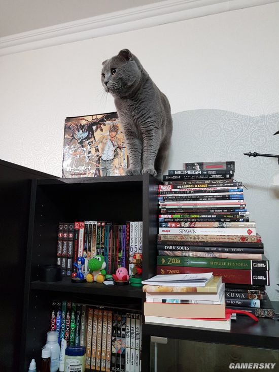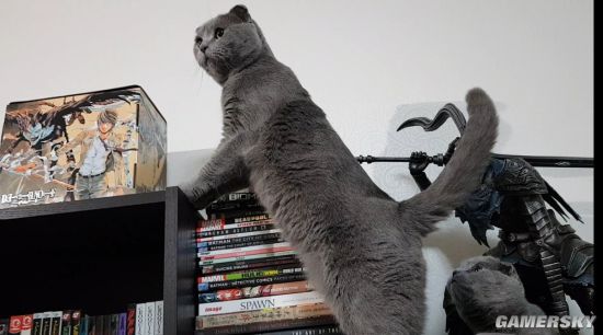 不过相信很多手办爱好者看到这一幕都要害怕了,这猫主子要是闹起来,别说阿尔特留斯了,这一柜顶的东西都能成为它的爪下亡魂,看它盯着手办的背影,跟看到小鱼干一样,主子,这可不能吃啊。