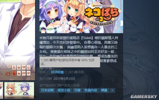 在我们昨天的报道中,发售才只过去了几个小时后,猫娘们就已经成功登顶了国区热销商品。好评如潮,好评率高达98%。而现在评测已经上涨到了1385篇,好评率仍然是98%。